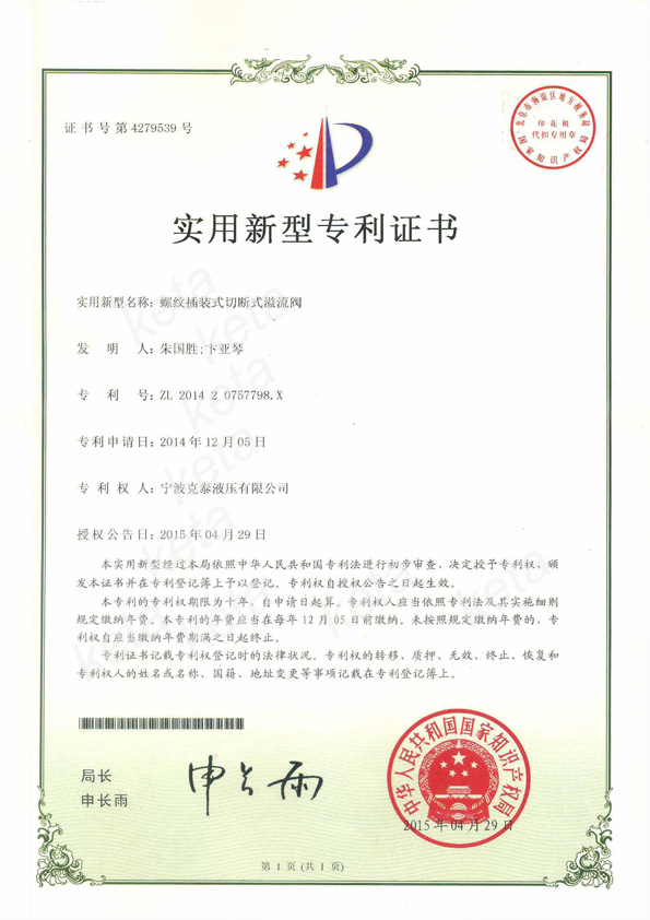 切断式溢流阀实用新型专利