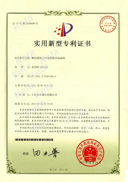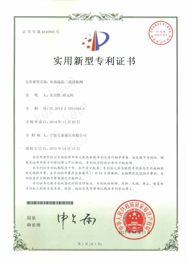 补油溢流二通插装阀实用新型专利