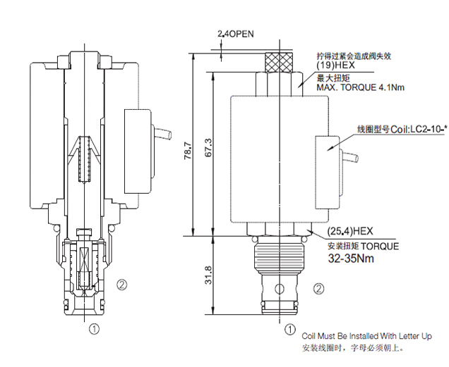 失电时,①到②相当于单向阀,②到①关闭;