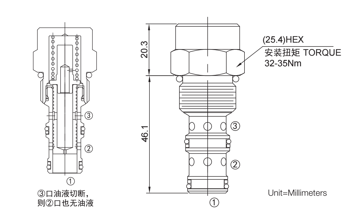 不管③口负载压力或旁路②口负载压力如何变化,从③口流出的流量维持不变;油液