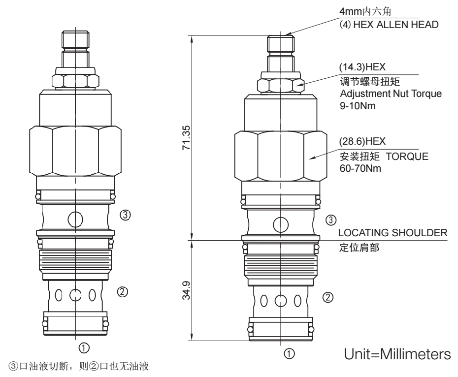旁路②口可作为工作口。流量的调整范围为名义流量设定值的 ±25%。