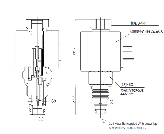 失电时,①到②相当于单向阀,②到①关闭;