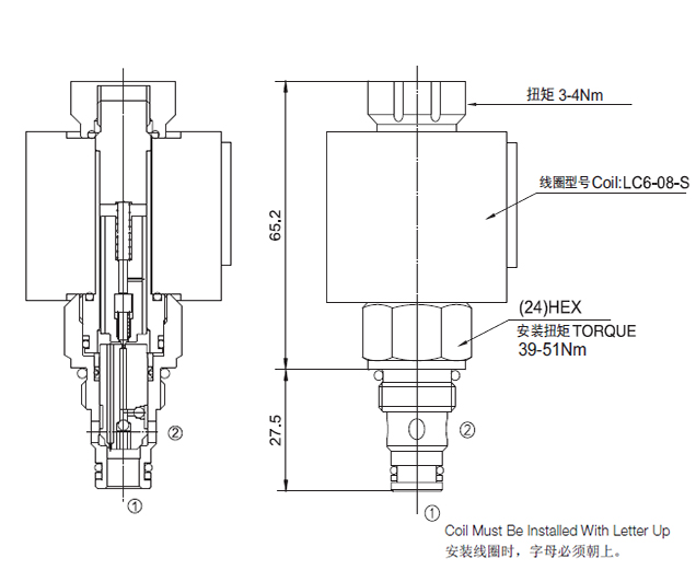 流量请查看《压力-流量曲线图》插孔08-2过滤参考《油液清洁度》最大工作压力350Bar内泄漏3 drops/min.(滴/分) max. at 350bar温度-40°F to +212°F(-40°C to +100°C)线圈额定负载Continuous from 85% to 115% of nominal voltage(连续工作电压)油液Mineral-based fluids with viscosities of 7.4 to 420 cSt.(矿物油粘度)阀块材料钢和球铁允许使用最大压力350bar -