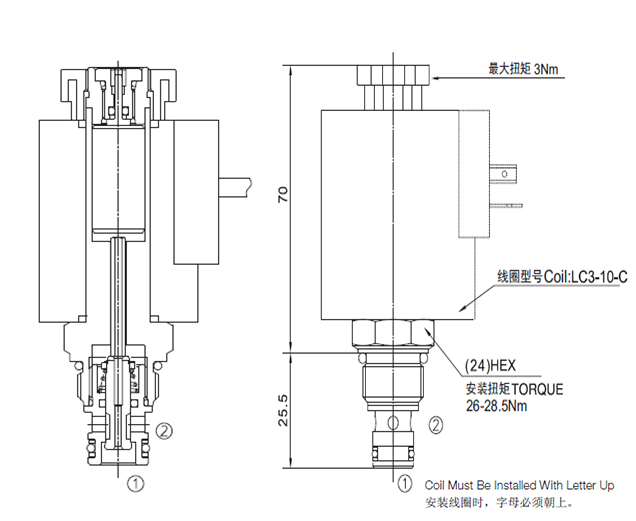 工作压力250Bar流量请查看《压力-流量曲线图》插孔HYDAC 06020过滤参考《油液清洁度》内泄漏<1 drops/min.(滴/分)Our ideal leakage: <0.05 drops/min温度-40°F to +212°F(-40°C to +100°C)线圈额定负载Continuous from 85% to 115% of nominal voltage(连续工作电压)油液Mineral-based fluids with viscosities of 7.4 to 420 cSt.(矿物油粘度)阀块材料6061-T6铝,允许使用最大压力207bar 钢和球铁允许使用最大压力350bar -