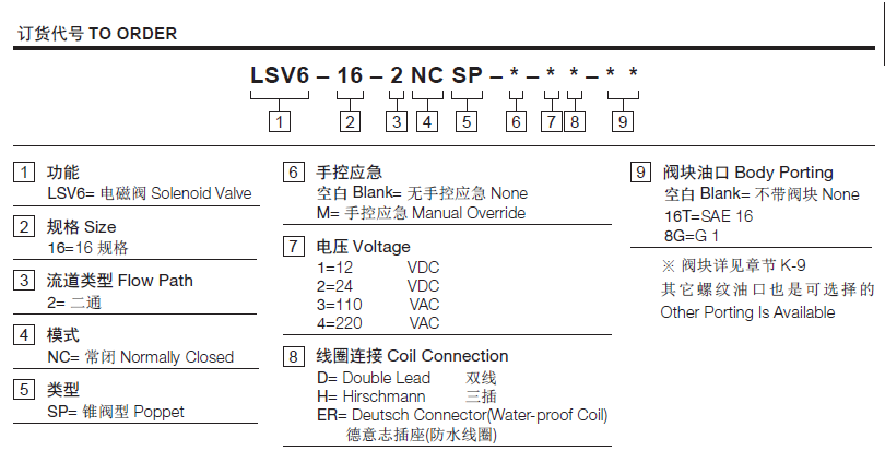 流量请查看《压力-流量曲线图》插孔16-2过滤参考《油液清洁度》最大工作压力350Bar内泄漏5drops/min.(滴/分) max. at 350 bar温度-40°F to +212°F(-40°C to +100°C)线圈额定负载Continuous from 85% to 115% of nominal voltage(连续工作电压)油液Mineral-based fluids with viscosities of 7.4 to 420 cSt.(矿物油粘度)阀块材料钢和球铁允许使用最大压力350bar -