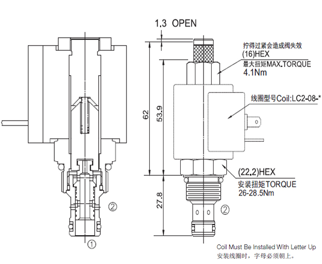 失电时,此阀允许油液双向流动;得电后,阀芯移动,从而双向截止油液流动。
